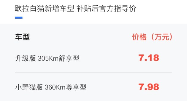 纯电续航:305-401km
