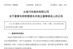 众泰汽车董事长李立忠辞职 韩必文被提名非独立董事候选人