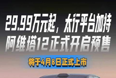 29.99万元起,太行平台加持 阿维塔12正式开启预售 将于4月8日正式上市