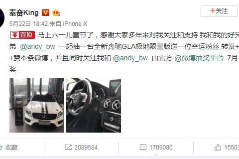 微博惊现史上最壕抽奖!22日下午,上海奋荣投资公司董事长@秦奋King 发布微博称,马上六一儿童节了,将抽一台全新奔驰GLA极地限量版送一位幸运粉丝!引发众多微博网友疯狂转发,截至上游新闻发稿前,该条